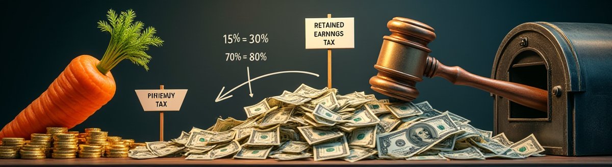 기존 제도는 이익 재투자를 너무 적게 한 대기업에 20%의 추가 법인세를 부과했는데, 이번 개정안에서 '배당금 지급'을 적격 사용처로 추가했습니다. 또한, 의무 재투자 비율을 대폭 상향했습니다.