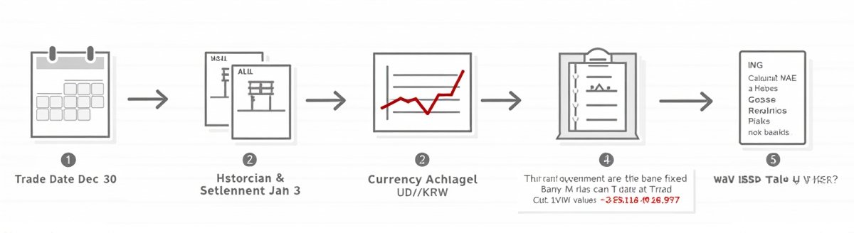취득가와 양도가를 원화로 계산할 때 어떤 시점의 환율을 적용했는지가 중요합니다. 매매손익은 실시간 환율이나 평균 환율을 쓰는 경우가 있고, 양도세는 체결 당시의 실제 적용 환율(체결환율) 을 사용해야 합니다.