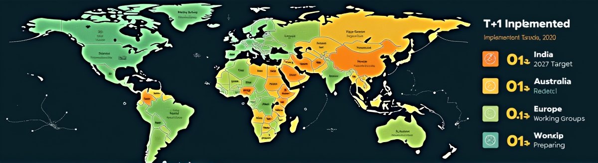 2024년 5월부터 미국, 캐나다, 멕시코가 T+1을 시행했으며, 유럽연합과 영국은 2027년 10월 전환을 목표로 하고 있습니다.